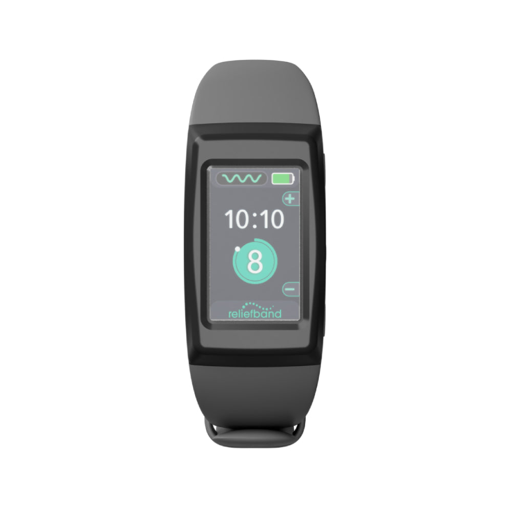 - One (1) Reliefband Premier+ nausea relief device in Charcoal